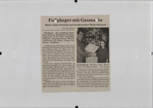A three-dimensional comic-story, including a raining cloud, a blown out fireplace, 17 dead doves and a soon to be broken glass of Whiskey. 13 days before the opening a 17-year-old student killed 15 people as well as himself during his amoklauf through Winnenden and Wendlingen. One of the 15 rampages at schools in Germany with the first one dating back to the 25th May 1871.